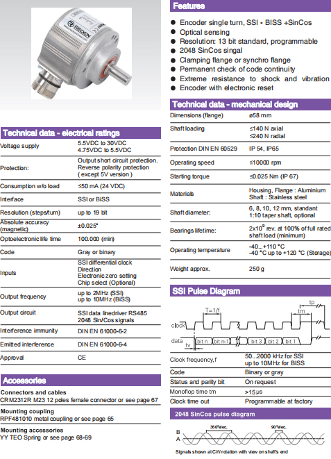 | ○ | 空載電流:≤ 50mA(24VDC) | ○ | 接口:SSI或 BiSS | |||