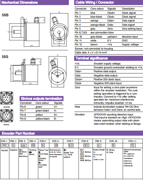 輸出電路: SSI數(shù)據(jù)線RS485 2048 Sin/Cos信號 |