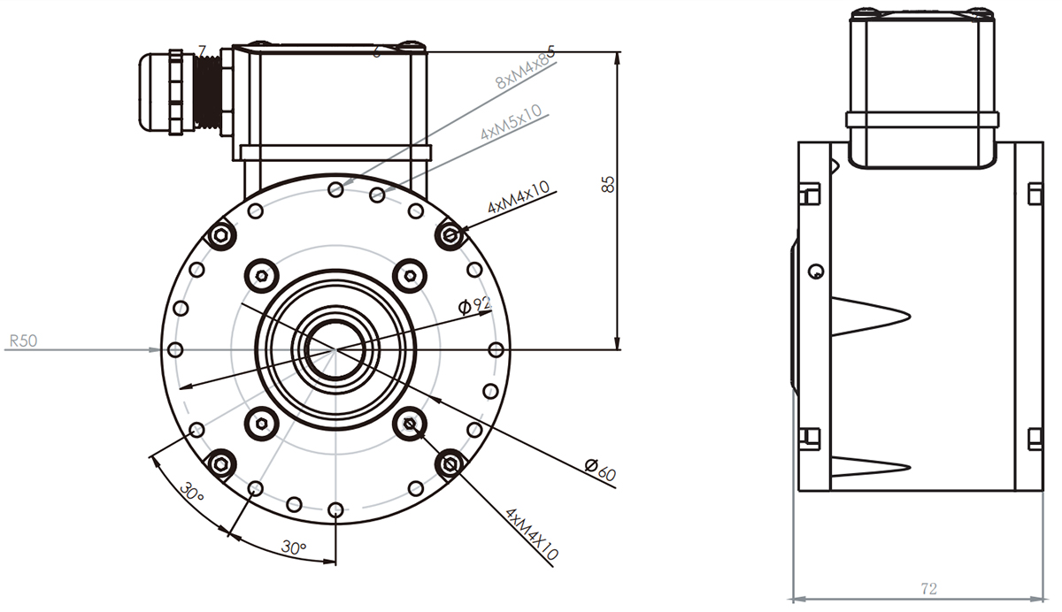 | ○ | 端子盒,M23連接器,電纜等可選 | |||||